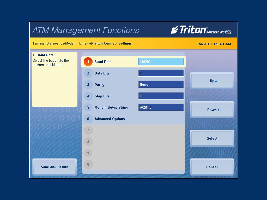This menu allows user to change the Triton Connect parameters. Do not attempt to alter these properties unless